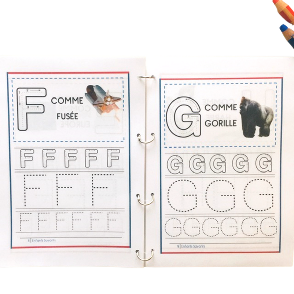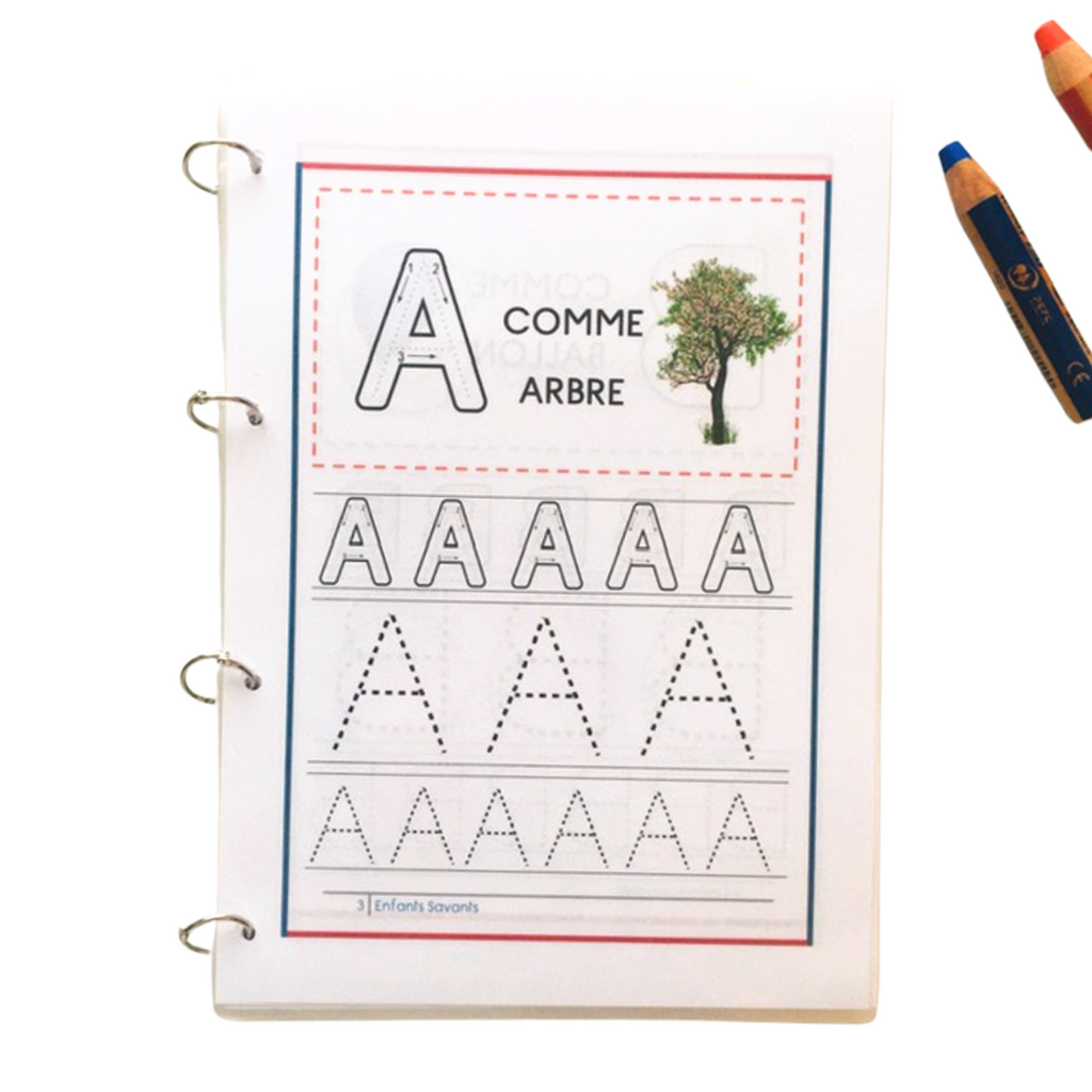 Inspiré de la pédagogie Montessori, ce cahier permet aux enfants de s'entrainer à écrire les lettres de l'alphabet à l'aide des tracés, mais aussi apprendre les sons des lettres grâce aux images associées.